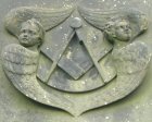 pedestal, with a relief of the universal symbol of freemasonry, the compass and dividers, carried by two winged