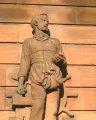 These include the City Chambers, for which he carved the spandrel figures in the loggia (1886); the former Anderson's Medical College, 56 Dumbarton Road, for which he executed a tympanum relief group depicting the 16th Century physician Peter Lowe and his Students and a pair of winged figures (1888-90); and the statues of the Engineer and Shipwright on the former Fairfield's shipyard (1890).