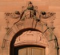 on the decorative carving on the building's east and